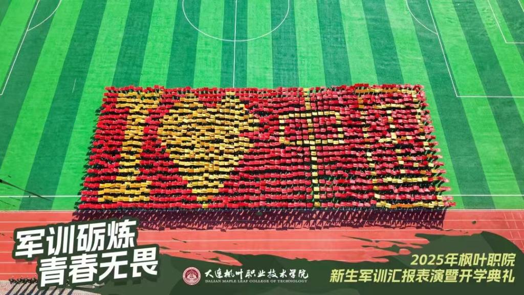 伴随着雄壮激昂的国歌声,五星红旗冉冉升起,全体人员肃立注目,赤诚之心与责任担当在迷彩方阵中激荡,拉开了活动的序幕。军号嘹亮中,分列式汇演正式开启,新生方阵迈着铿锵正步踏响操场,整齐划一的臂章与规范标准的动作尽显青春担当与军人气魄;外国学子组成的特色方队精神抖擞、步伐稳健,融入队列之中,成为展现校园跨文化交融的亮眼风景。汇报表演环节亮点纷呈,队列示范队员摆臂踢腿精准划一,奠定昂扬基调;军歌演唱环节领唱从容、全场挥帽跟唱,热忱满溢校园;战术演习压轴登场,队员手持装备穿插匍匐,硬核场景点燃现场氛围。此外,创新方队的特别表演格外吸睛,机器人以精准步伐与学生方阵协同前进,科技感十足,同学们通过默契配合用创意摆字传递热血信念,别样场景赢得现场阵阵掌声。汇报表演后,表彰仪式如期举行,优秀标兵队列昂首头阵彰显责任担当,优秀寝室内务整齐划一展现优良作风,优秀院系凭借丰硕成果脱颖而出,一个个荣誉时刻定格,共同绘就军训育人的亮眼答卷。随后,新生代表、留学生代表先后发言,分享军训收获与成长感悟,表达对未来校园生活的憧憬与期待;教师代表与家长代表分别登台,寄语新生珍惜时光、砥砺奋进,在职院舞台绽放光彩。全体新生高举右拳庄严宣誓,铿锵誓言响彻运动场,彰显着新时代青年的理想与担当。校领导在致辞中,对圆满完成军训的新生们表示祝贺,回顾了军训期间的难忘瞬间,肯定了全体新生在磨砺中收获的成长与蜕变,并对新生们的未来学习生活提出殷切期望,鼓励大家以军训为起点,锤炼品格、勤学善思,在青春赛道上奋力奔跑。伴着经久不息的热烈掌声,大连枫叶职业技术学院2025年新生军训汇报表演暨开学典礼圆满落幕。带着迷彩服赋予的坚韧意志与奋斗精神,2025级新生们将转身奔赴课堂,在新的人生征程上踔厉奋发、笃行不怠,开启属于自己的职院新篇章。未来,学校也将持续秉持育人初心,为学生成长成才搭建广阔平台,助力青年学子实现人生理想。