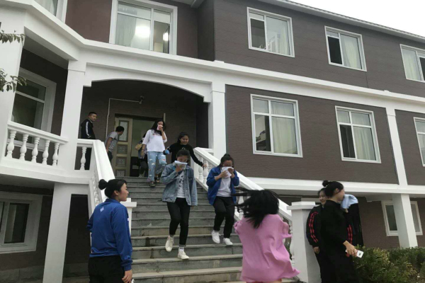 晚上18:00点,公寓楼内短促、刺耳的消防警报声瞬间划破天空,听令即动,各公寓楼的值班老师立即按着消防预案,畅开各个消防通道,迅速组织楼内学生疏散,疏散途中要用湿毛巾八折,捂住口鼻,弯腰低姿势快速离开,演练前后用时2分22秒,所有同学从9栋公寓楼里安全撤离完毕,没有一人受伤、掉队。