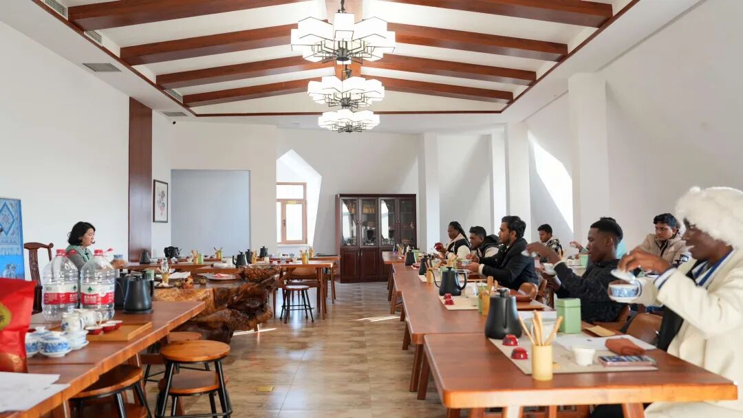 在老师的悉心指导下,留学生们纷纷动手实践,模仿着标准动作感受茶叶到茶汤的神奇蜕变。当一杯杯色泽红艳、香气四溢的红茶从自己手中诞生时,大家脸上都洋溢着成功的喜悦与自豪。他们轻嗅茶香、细品茶汤,在氤氲茶气中直观感受中国茶文化 "静心、修身、养性" 的深邃内涵。