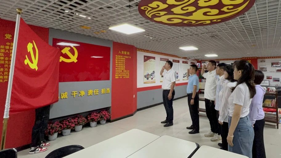 大会尾声,支部党员面向党旗,庄严宣誓。